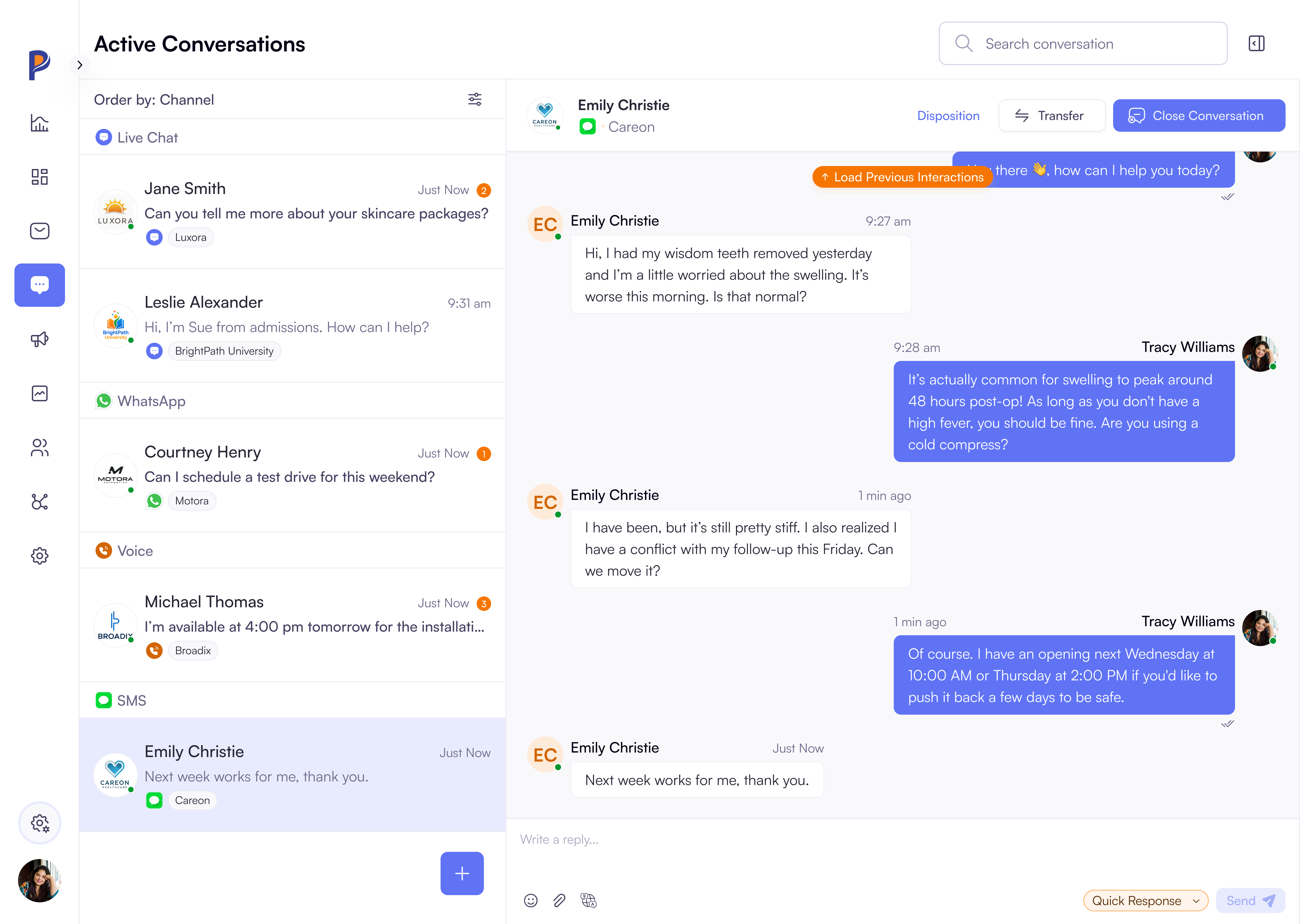 Agents handle all conversation types from one interface, eliminating application toggling overhead.